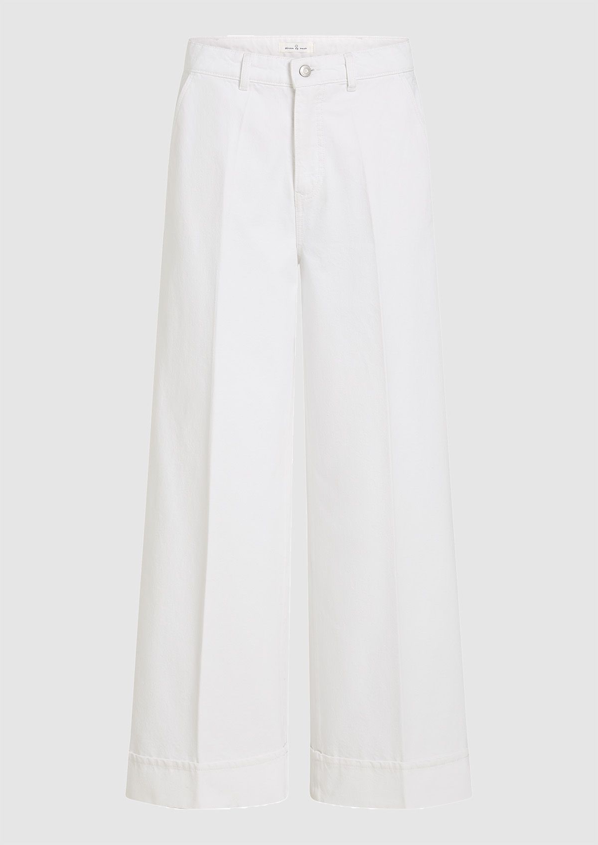De Roza is onze high-rise wide leg witte jeans en is gemaakt van 100% katoen. De jeans heeft een omgeslagen zoom en een wat stuggere stof, waardoor hij niet stretcht.