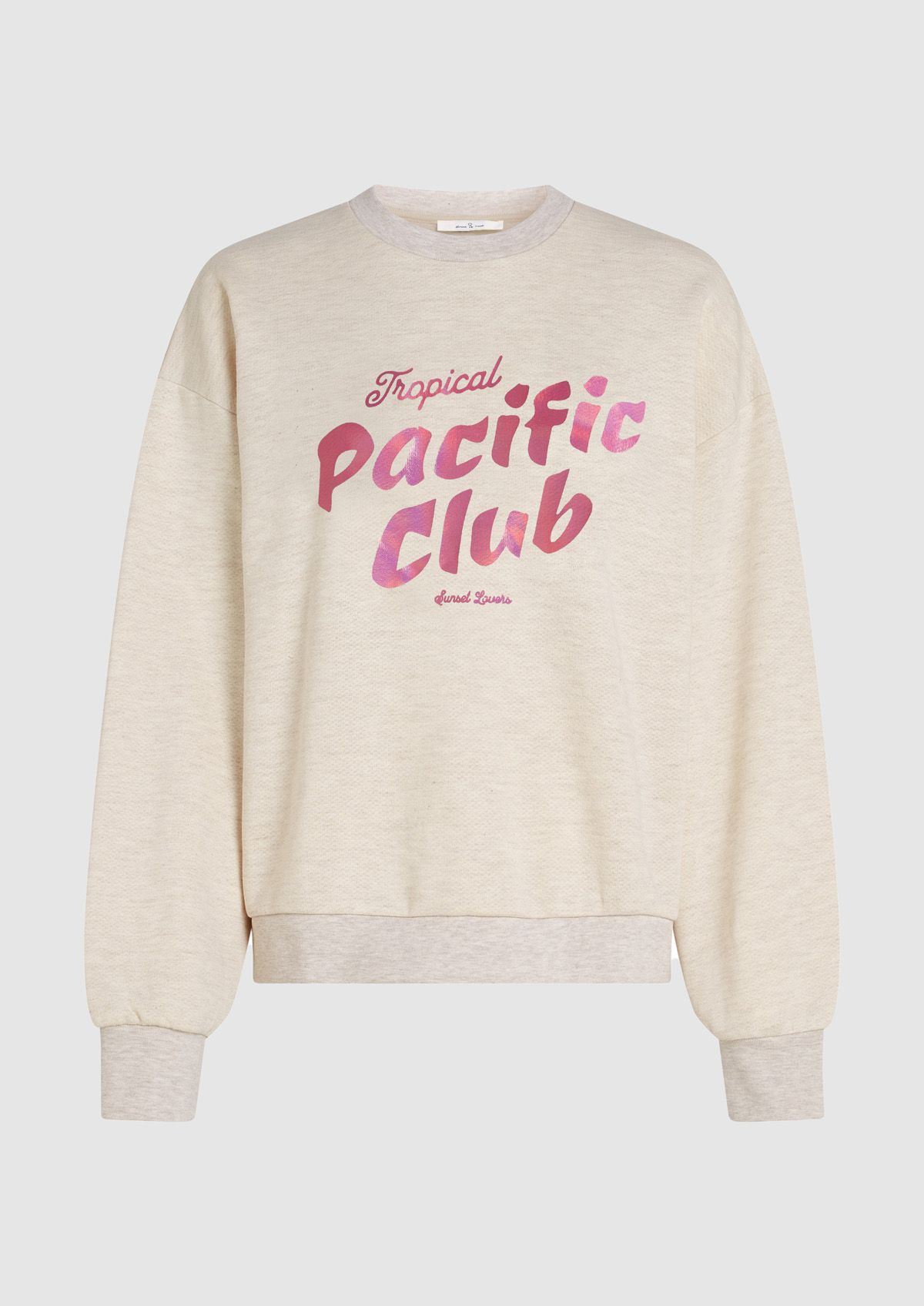 Comfy dames sweater gemaakt van een zachte katoen blend in een gemêleerde beige tint. De Biba sweat heeft een loose fit met een ronde hals en een rode print op de borst. In meerdere prints verkrijgbaar.