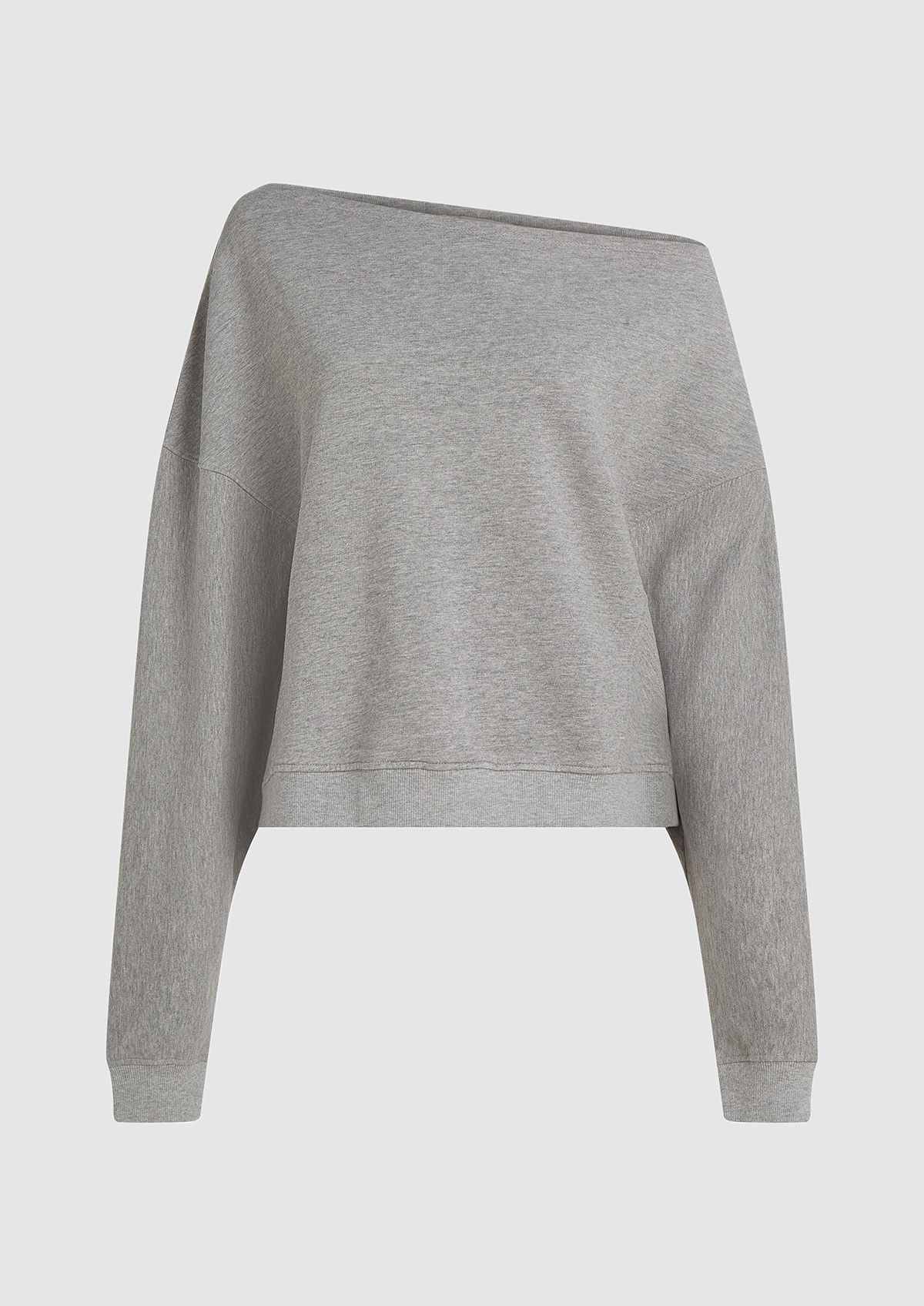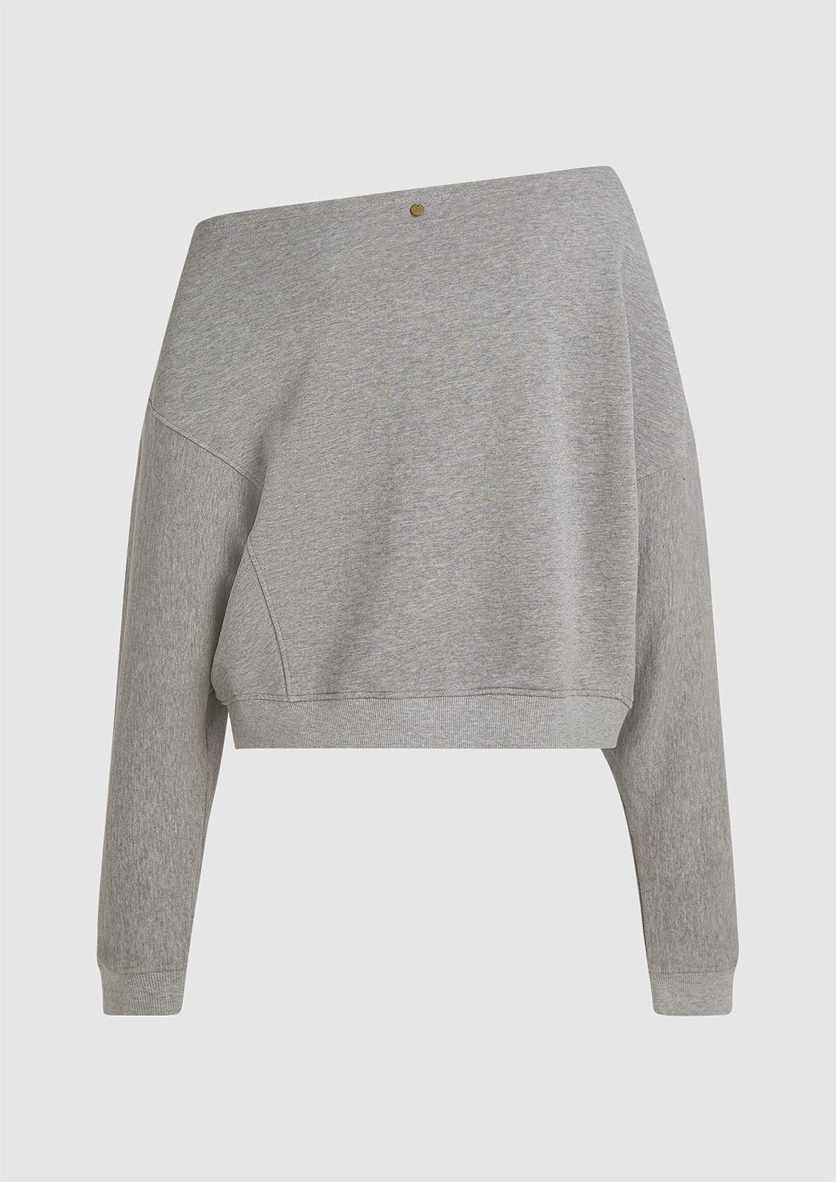 Katoenen off-shoulder meisjes sweater uitgevoerd in het lichtgrijs. De Cody sweat heeft een loose fit met ribgebreide boorden.