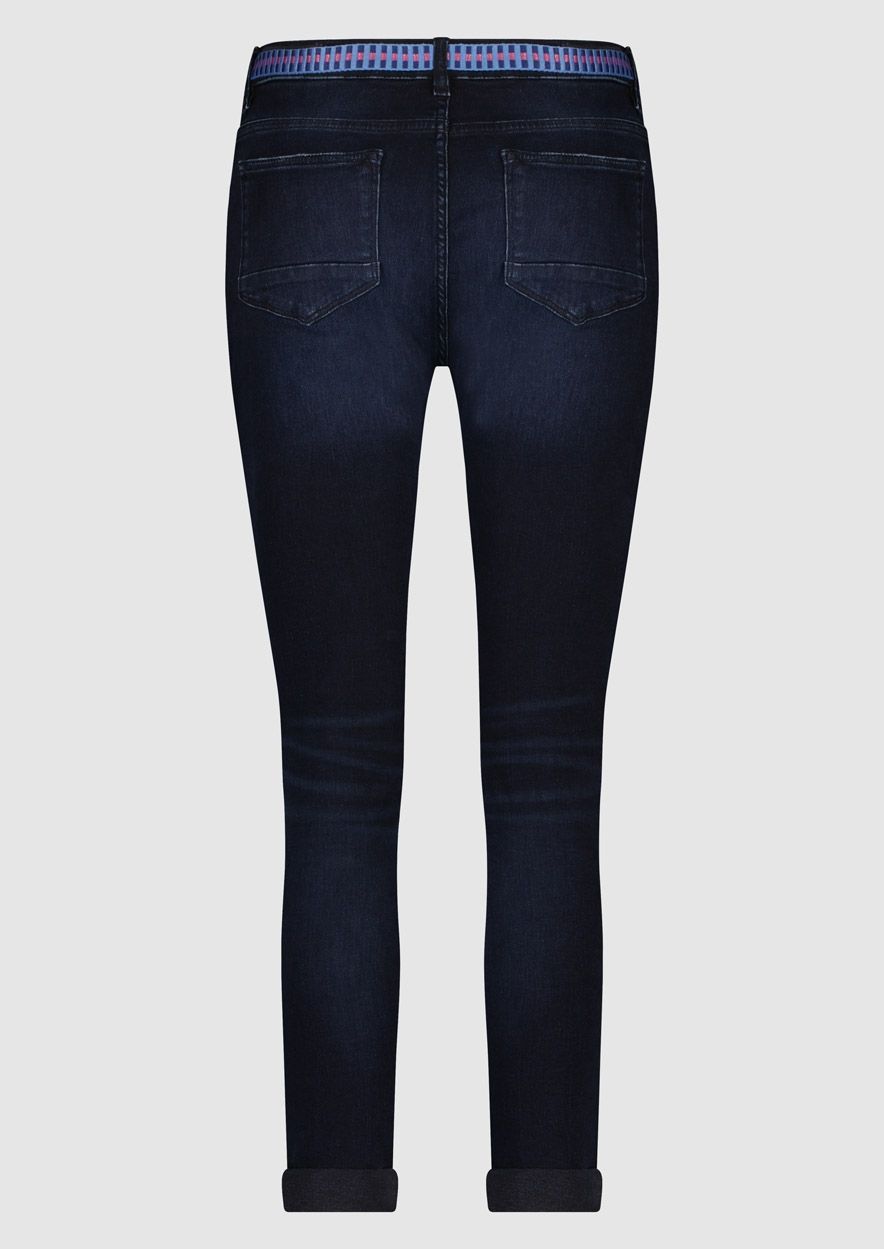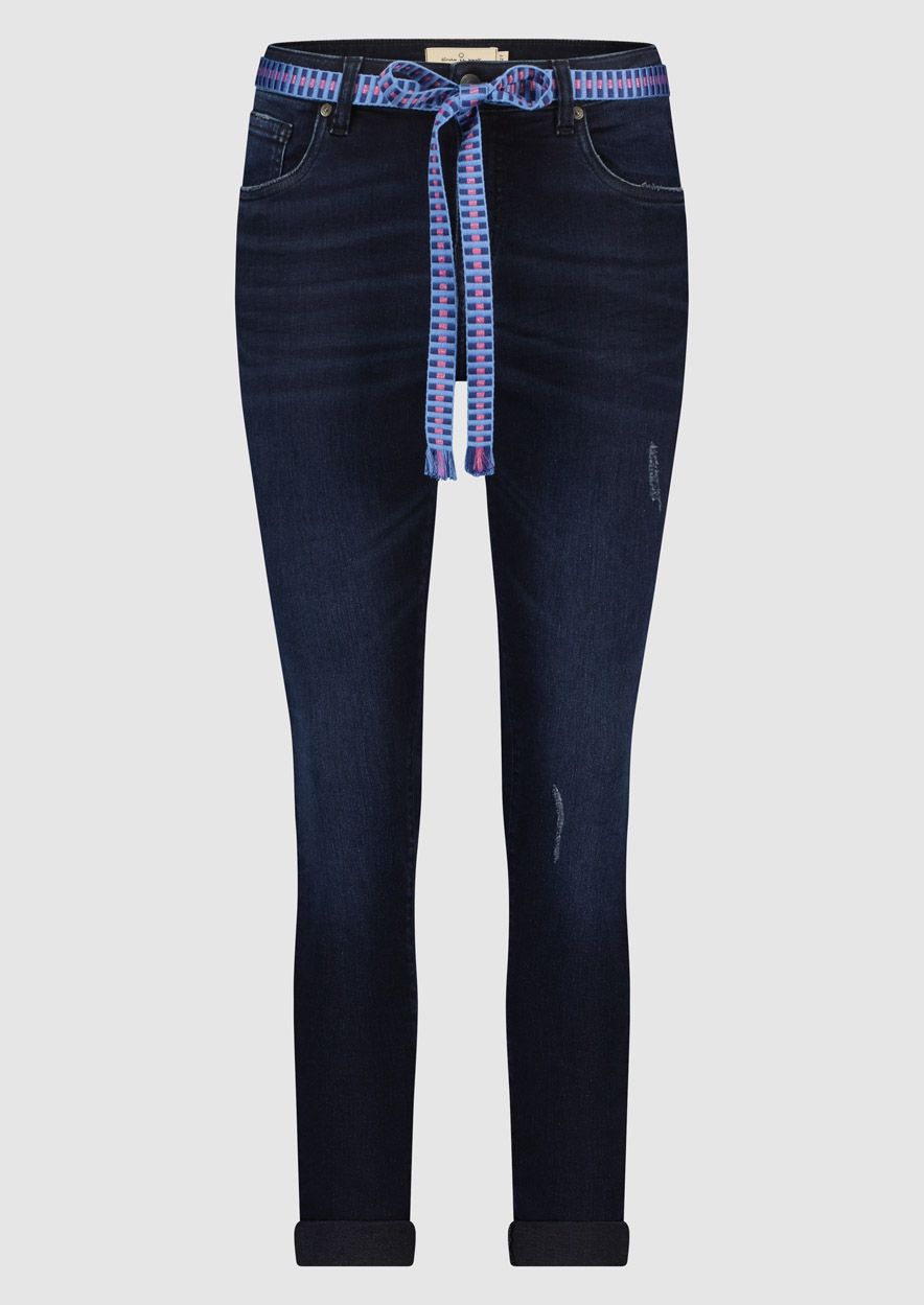 De Cooper heeft een skinny boyfriend fit met een mid-rise. Deze denim is gemaakt van stretch katoen in een donkerblauwe wash met subtiel beschadigde details en de broek wordt geleverd met een decoratieve ceintuur.