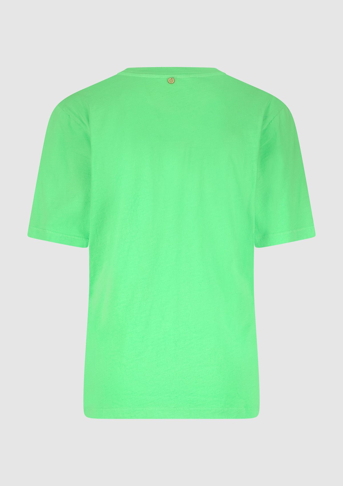 Luchtig katoenen dames t-shirt uitgevoerd in fel groen. De Cleo tee heeft een regular fit met een ronde hals. Verkrijgbaar in diverse kleuren.