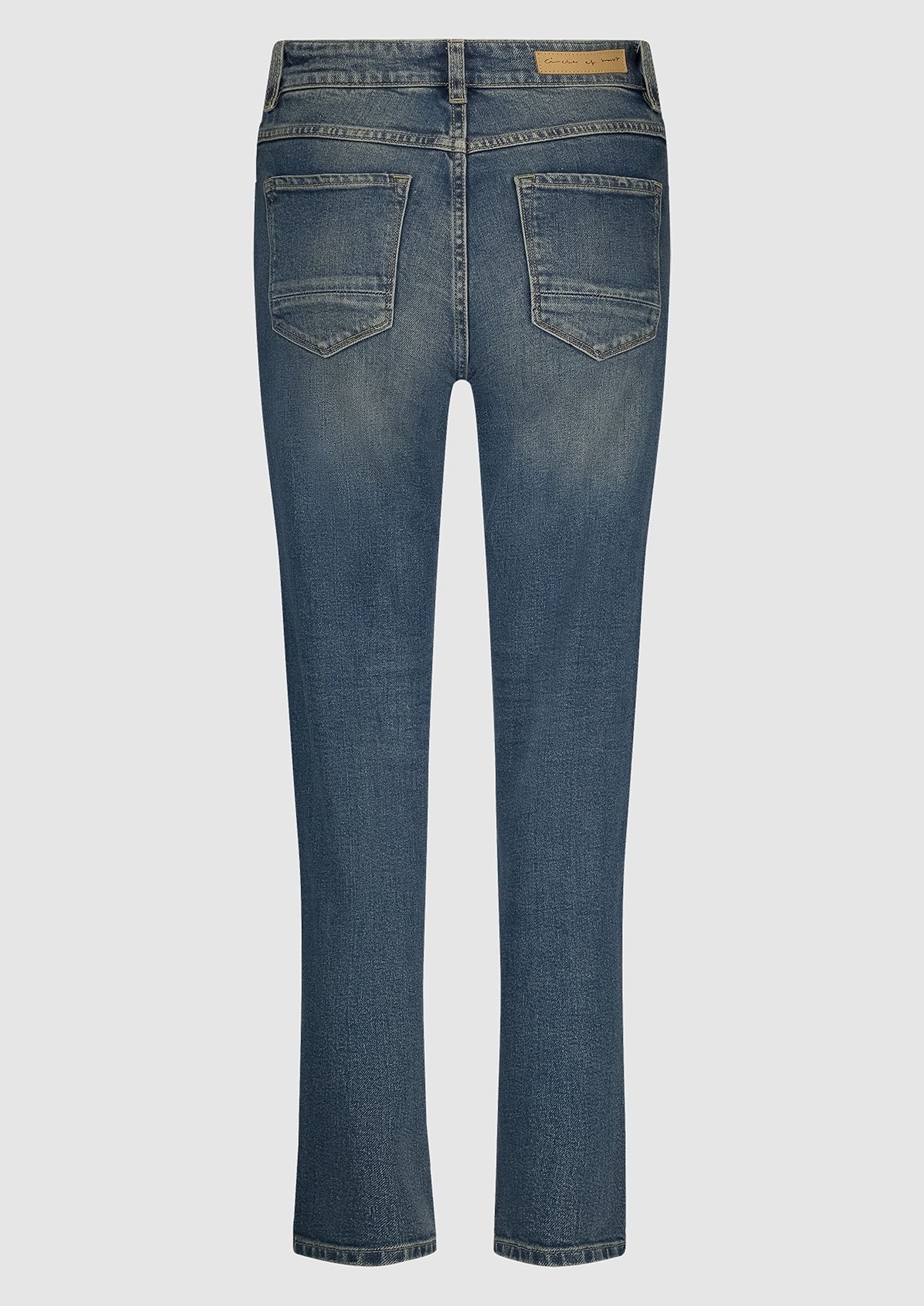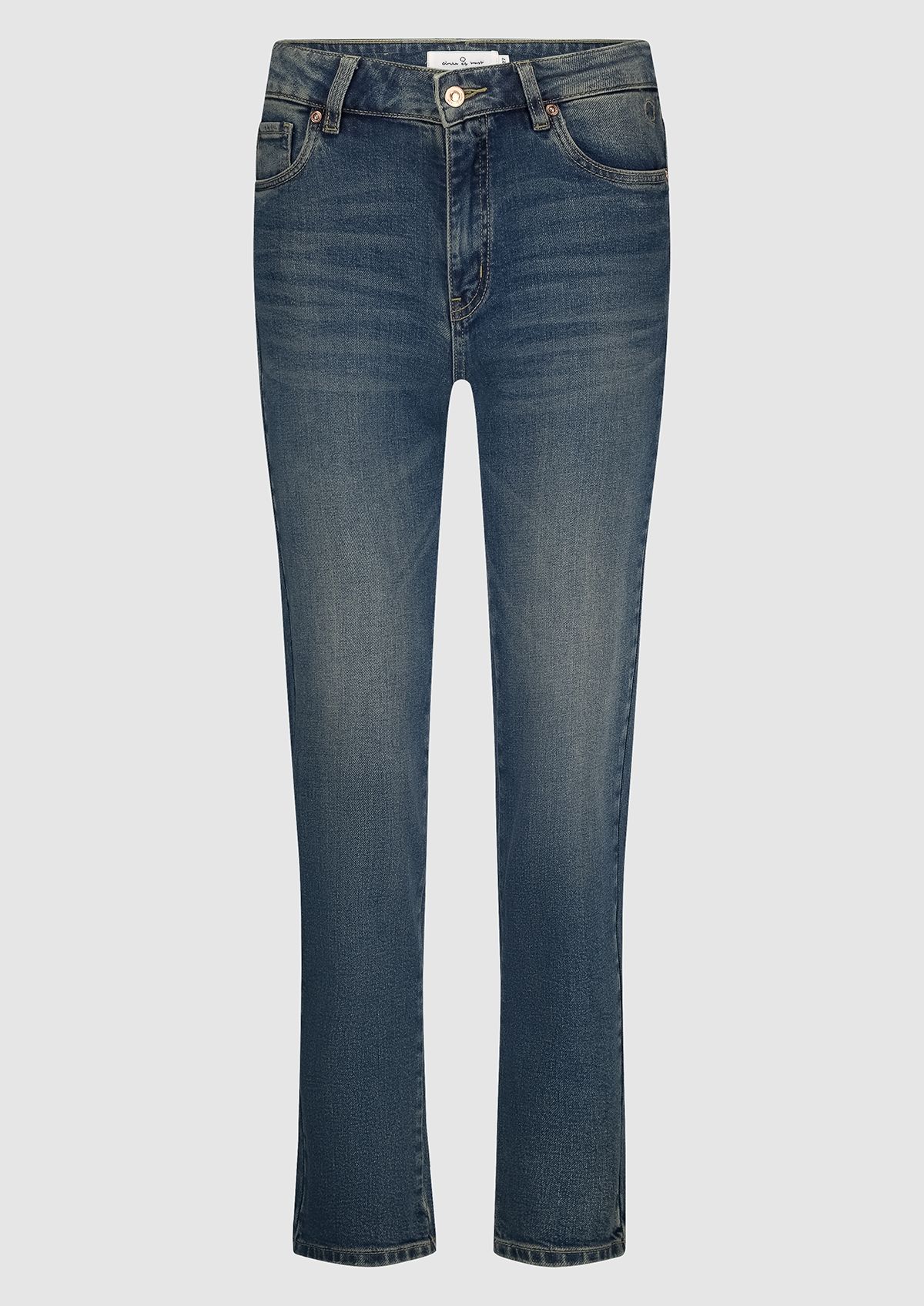 De Chloe is onze mom fit denim, dit model zit los op de benen en loopt taps toe. Deze jeans heeft een hoge taille met een 5-pocket design en is uitgevoerd in een donkerblauwe wassing met een gedragen look.