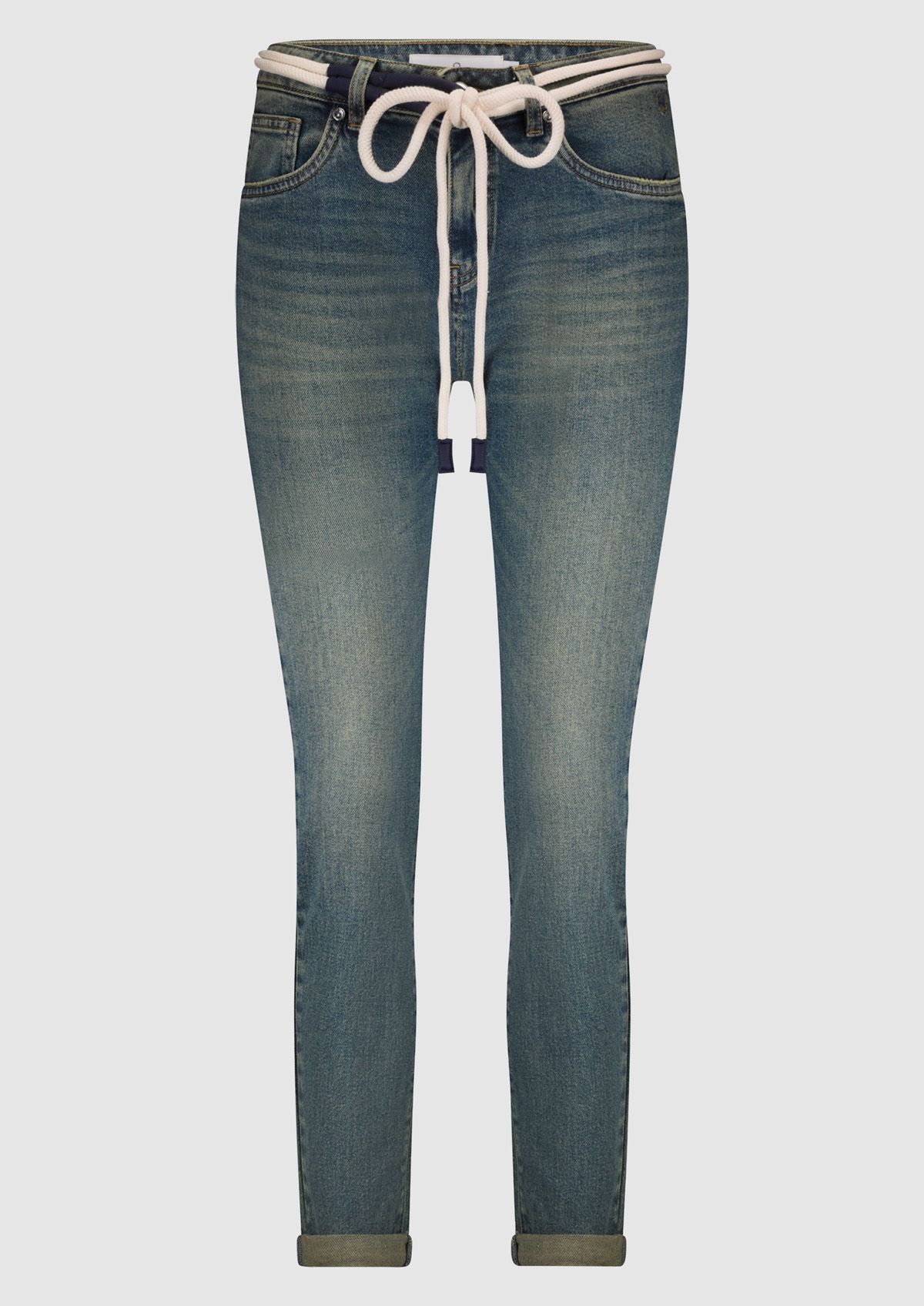 De Cooper is onze slim fit met een mid-rise en is gemaakt van denim met een vleugje stretch. Deze jeans is uitgevoerd in een vintage groenblauwe wash met een dirty fade en is voorzien van een decoratieve ceintuur.