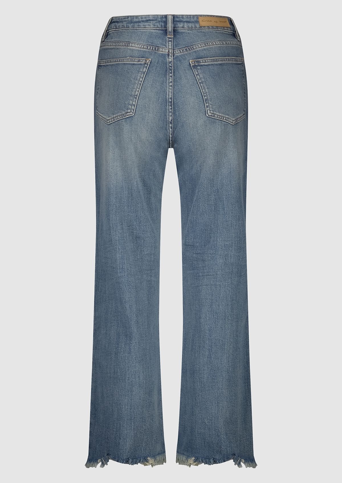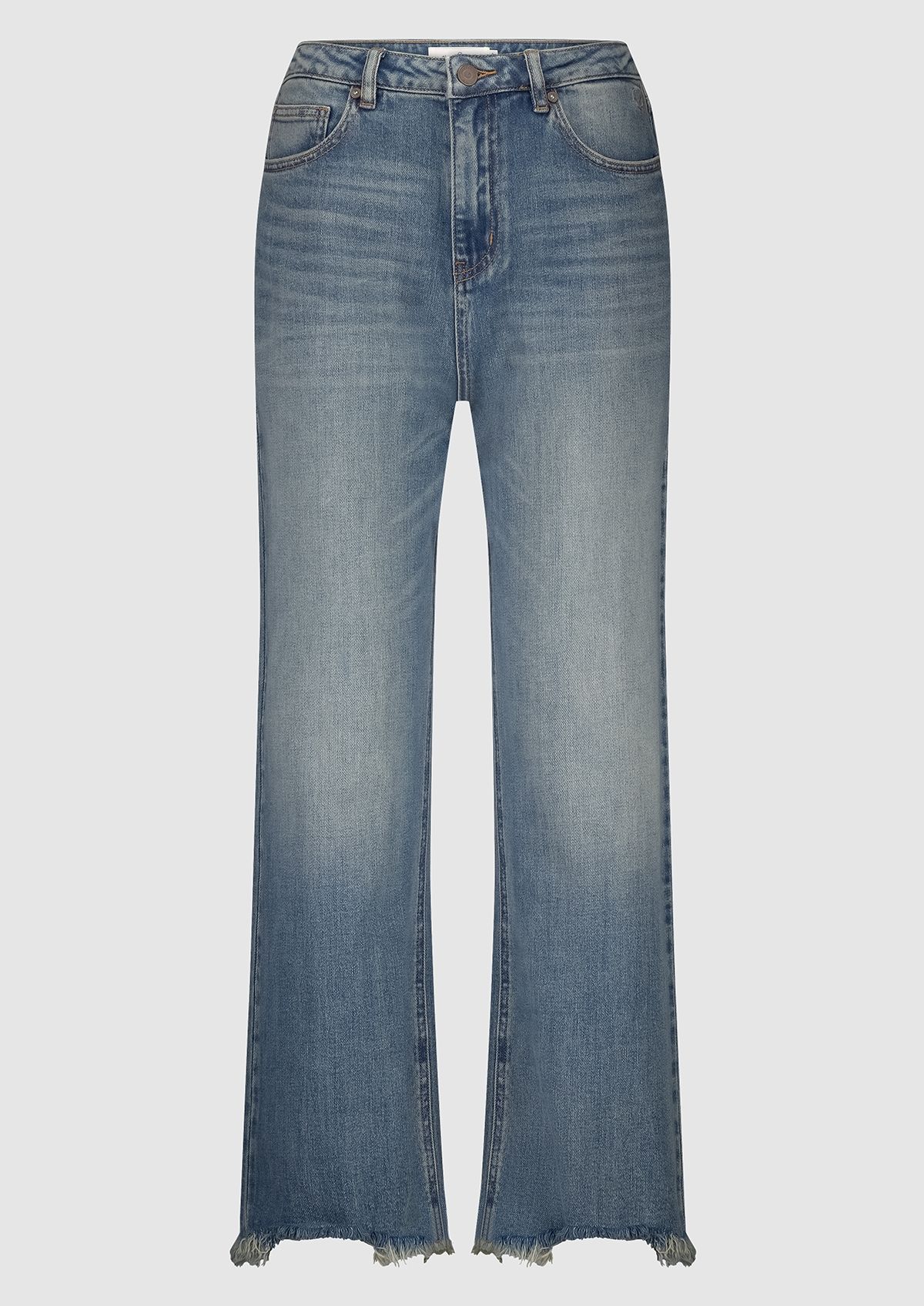 Regular fit dames jeans met een hoge taille en een cropped lengte met gerafelde broekspijpen. De Wynn heeft een 5 pocket ontwerp en is uitgevoerd in een blauwe denim met een subtiele fade.