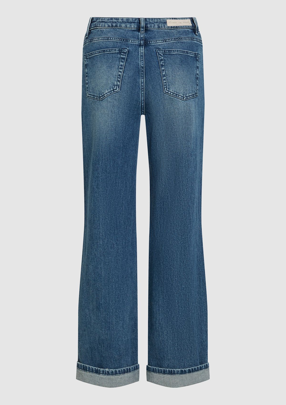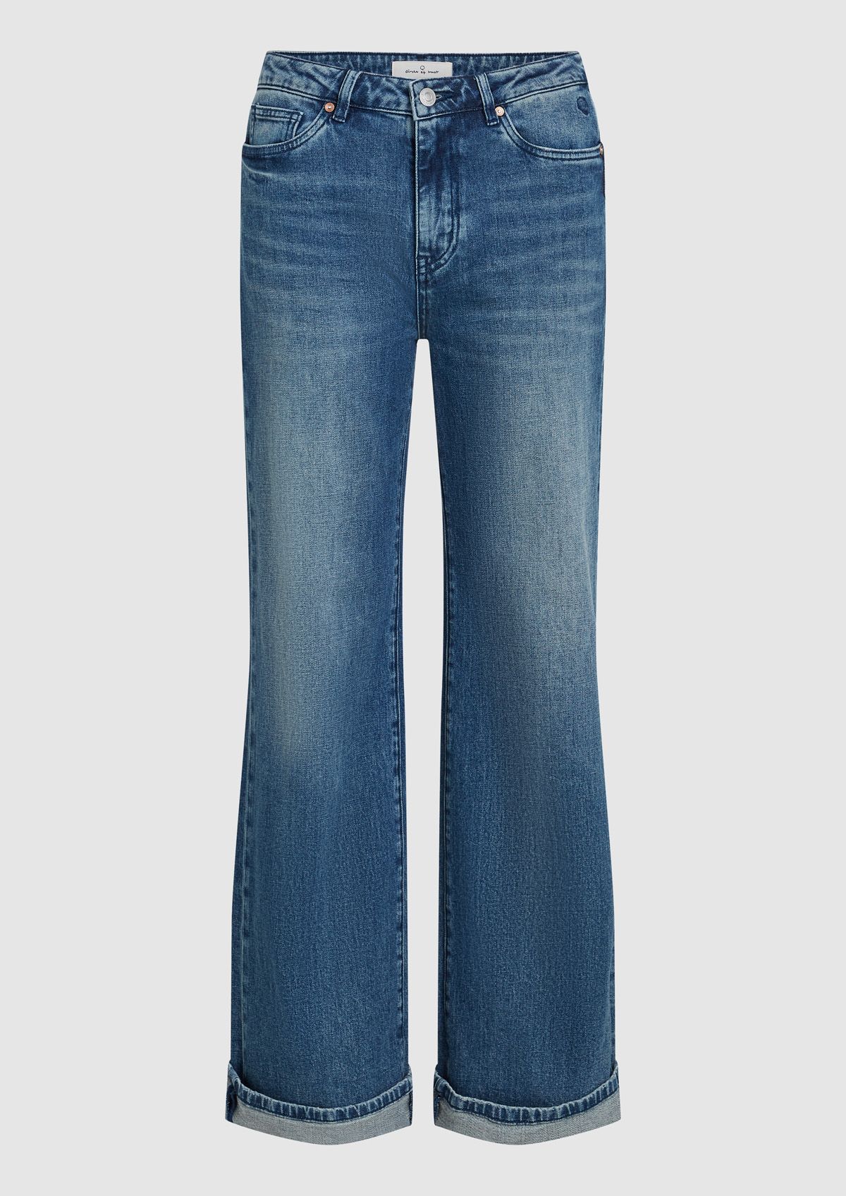 De Maddy is onze wide leg denim met een hoge taille. De jeans is ontworpen met een 5-pocket design en is uitgevoerd in een blauwe wassing met lichte fade.