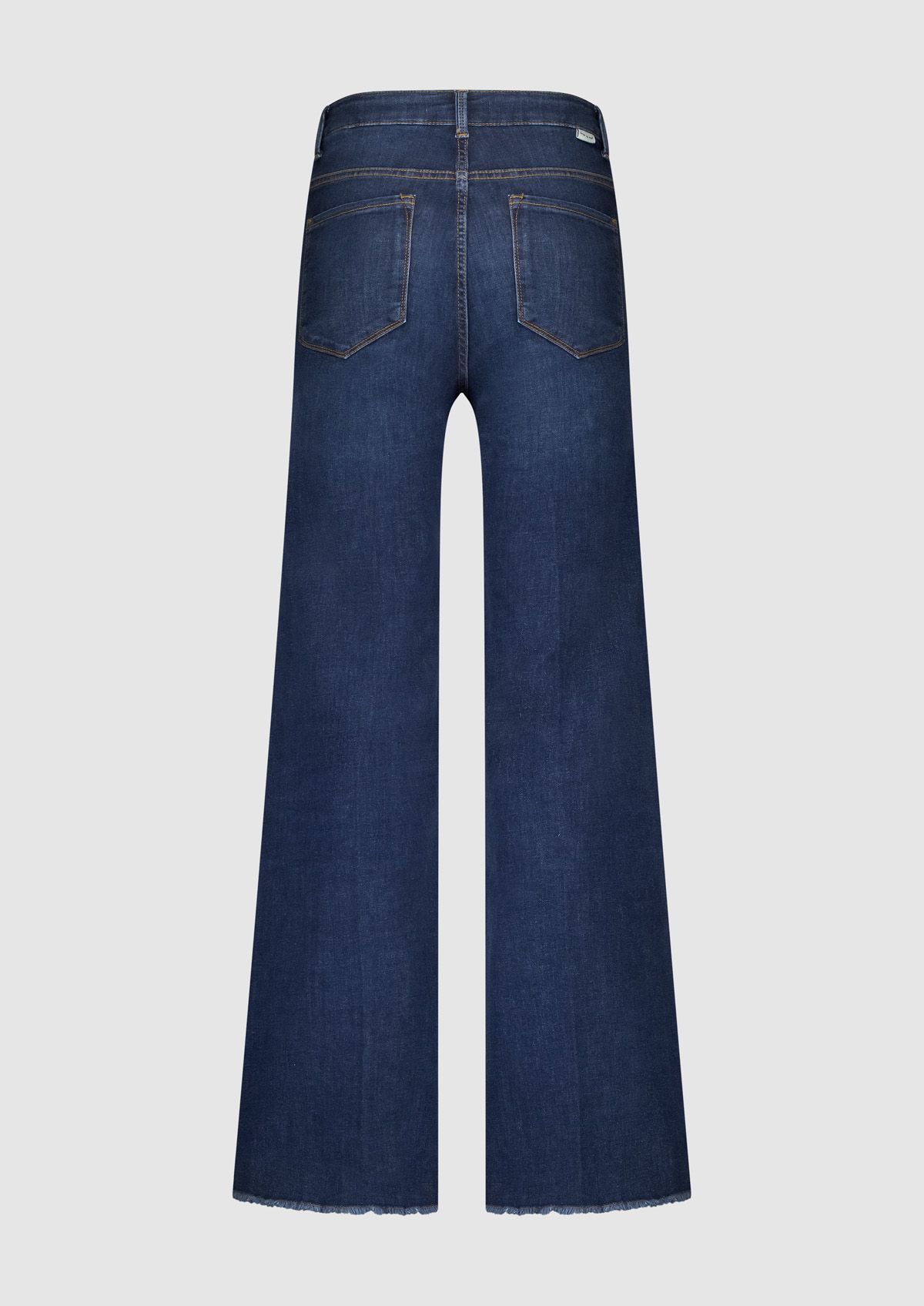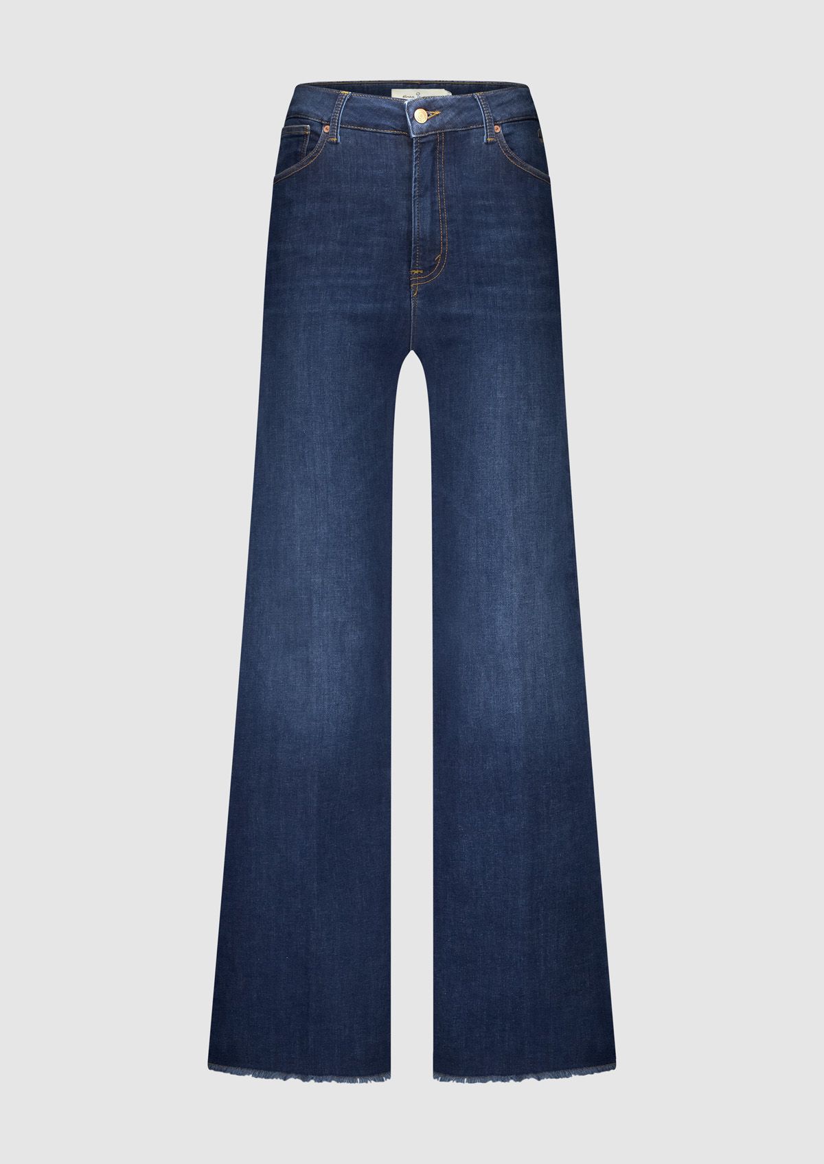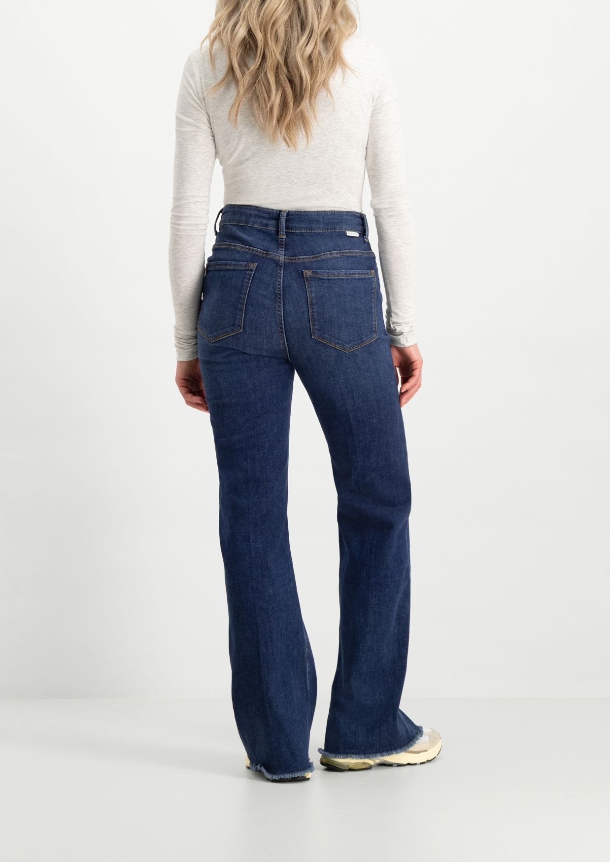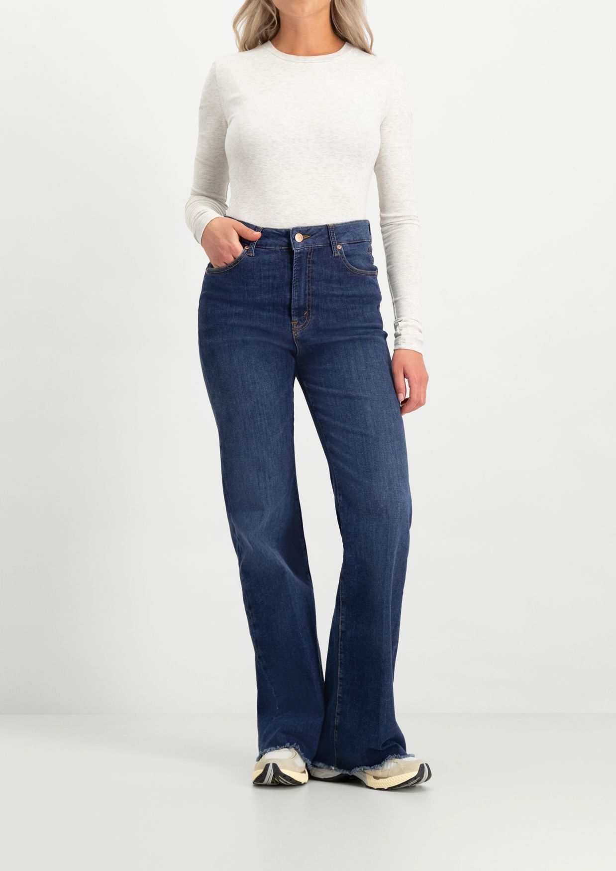 De Marlow is onze high waist denim met wijde, licht uitlopende broekspijpen en een gerafelde onderkant. Deze jeans is gemaakt van stretch katoen en heeft een donkerblauwe wassing met minimaal contrast. Dit model is verkrijgbaar in meerdere wassingen.