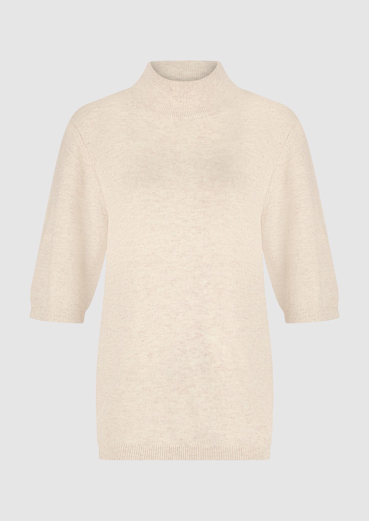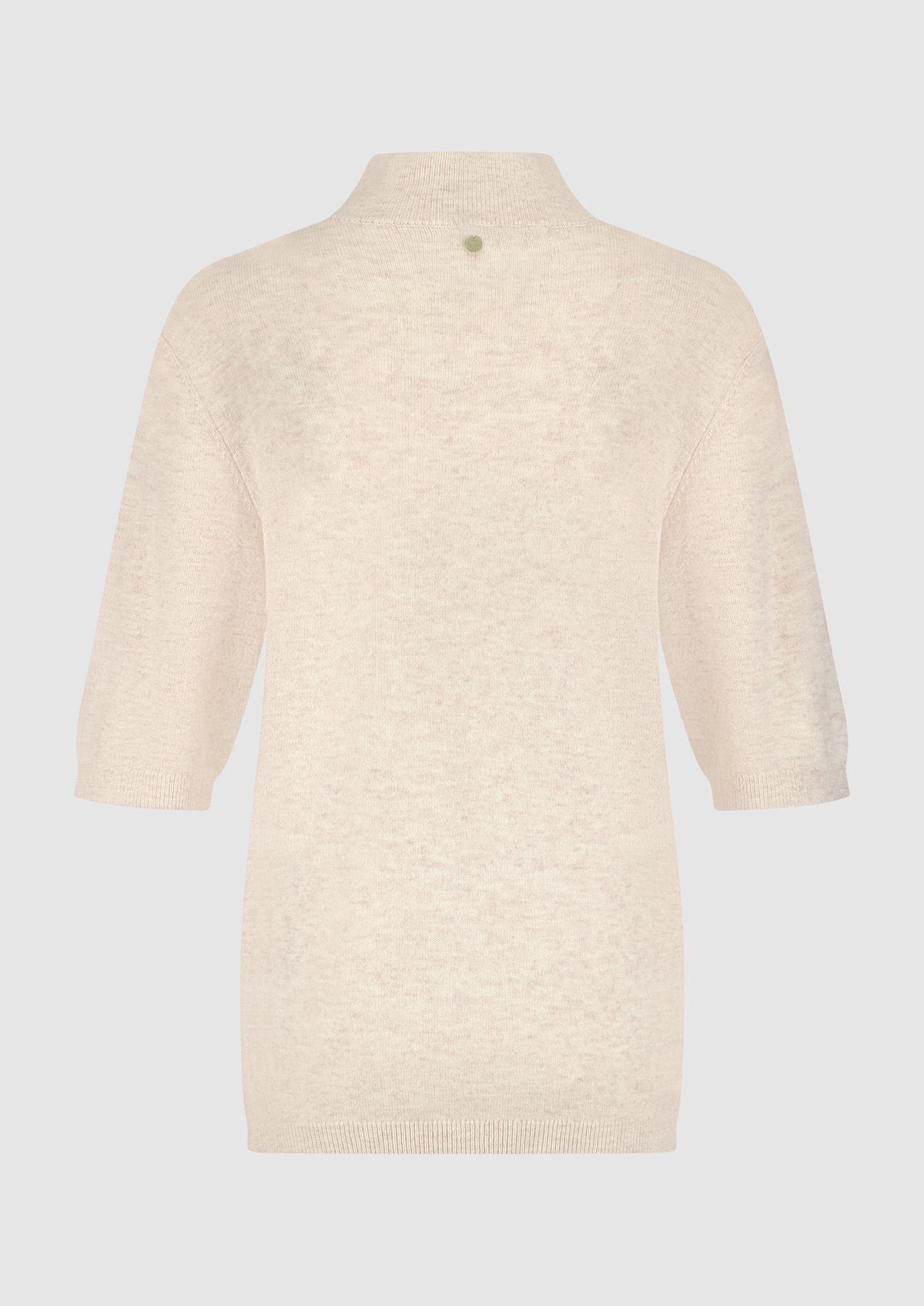 Gebreide dames top met korte mouw, uitgevoerd in beige melange. De Jackie top heeft een regular fit met ronde hals en een boord aan de mouwuiteinden en onderkant. In meerdere kleuren verkrijgbaar.