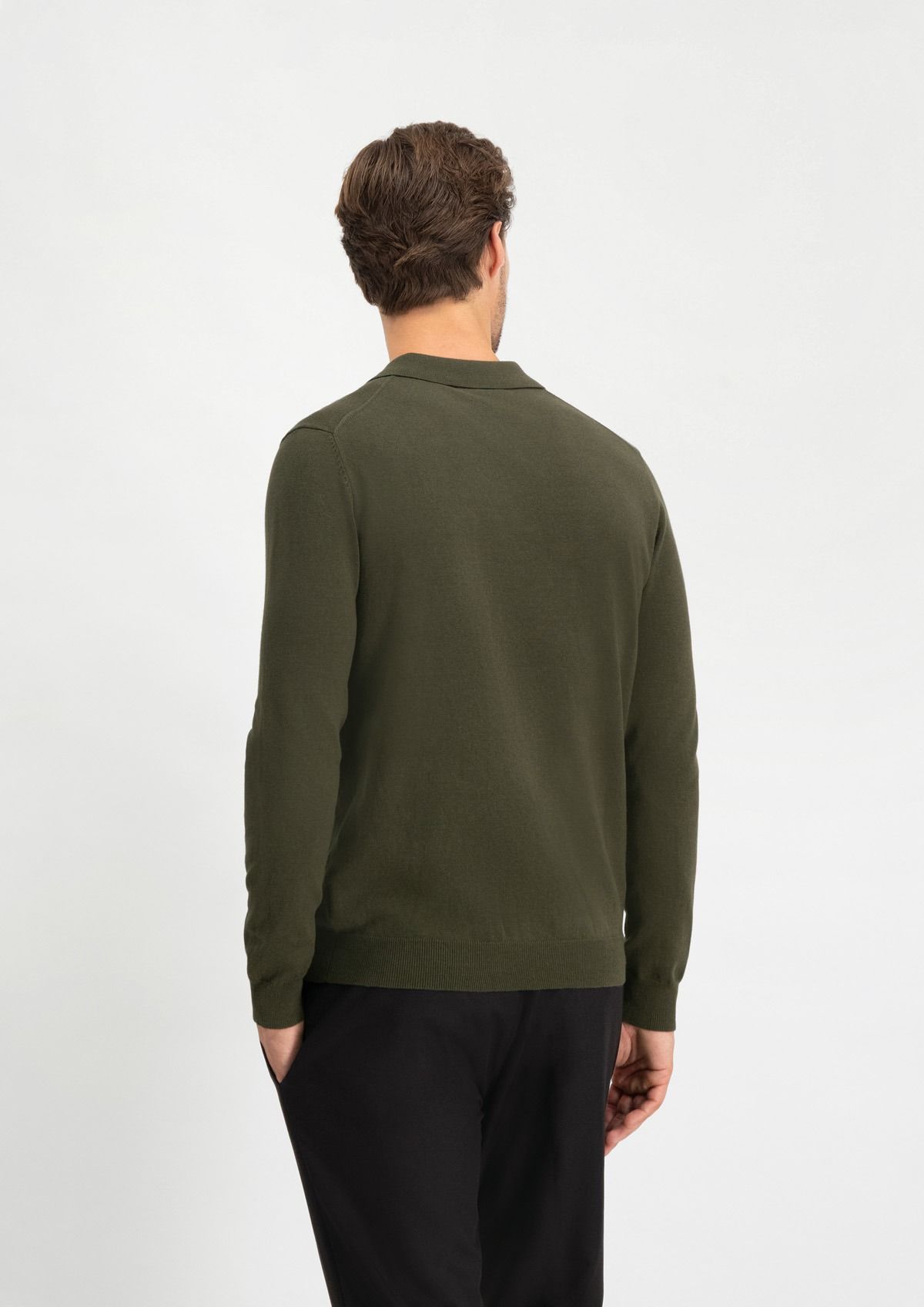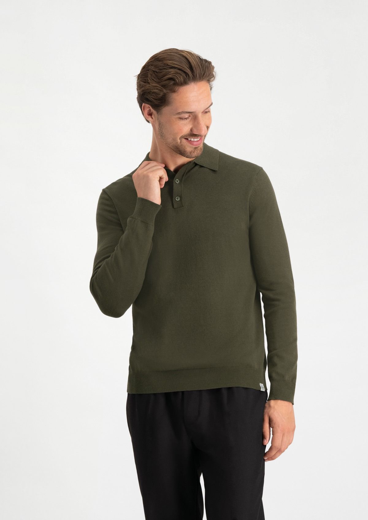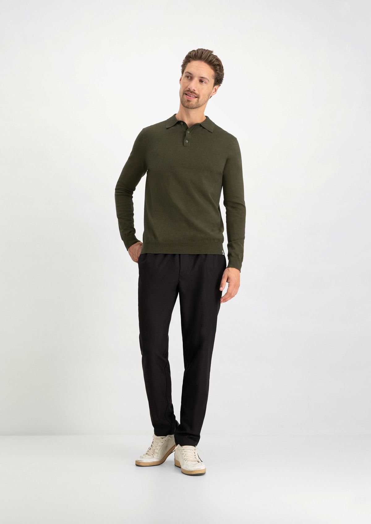 Katoenen longsleeve polo voor heren, uitgevoerd in het groen. De Harvey polo heeft een regular fit met een polo kraag en ribgebreide boorden.