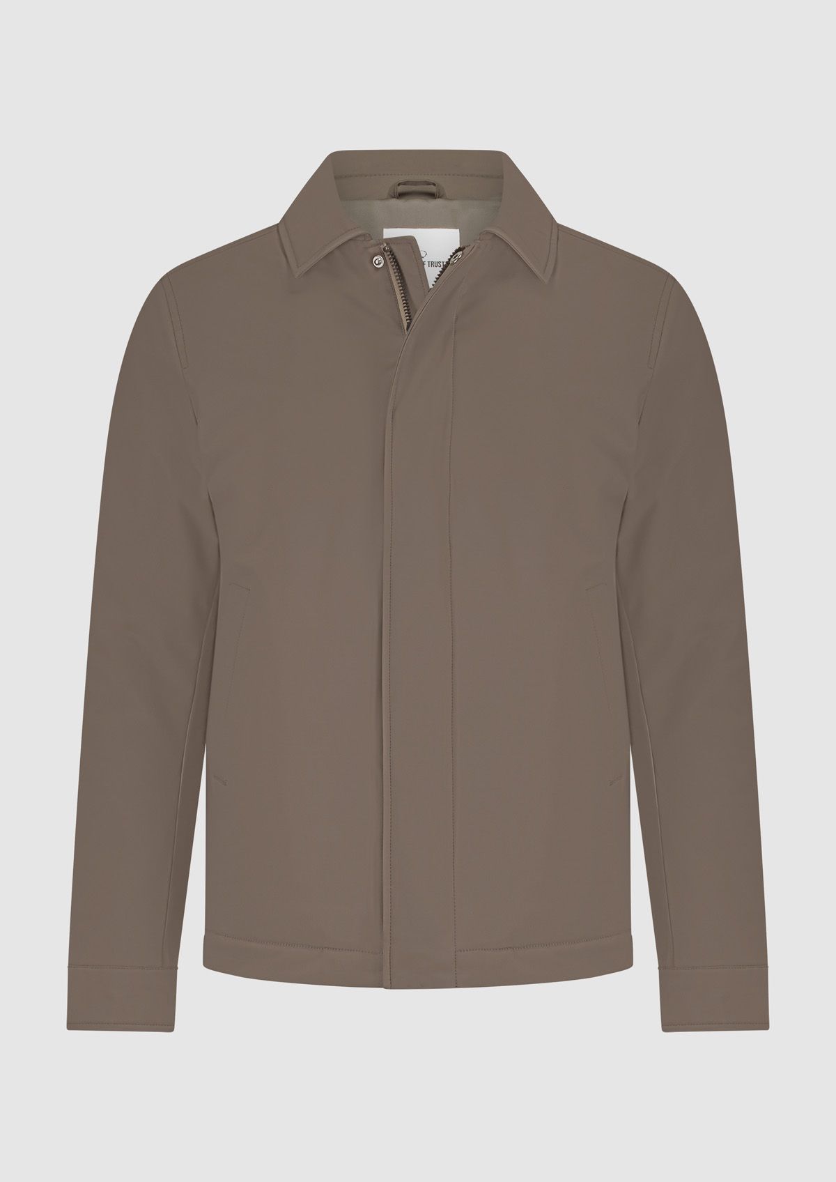 Gevoerde bruine herenjas gemaakt van polyester. Het Cliff jack heeft een regular fit en een sluiting met rits en drukknopen.