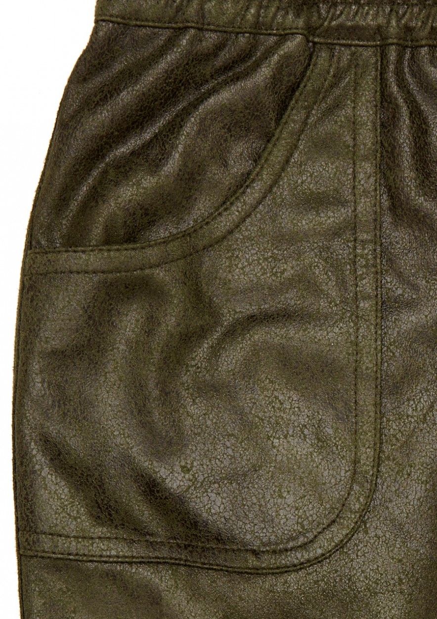 De Regan voor meisjes is ontworpen met een tapered chino fit en is uitgevoerd in het donkergroen met een cracked leather look. Het stretchy materiaal voelt zacht aan en de broek is voorzien van een elastische tailleband en steekzakken.