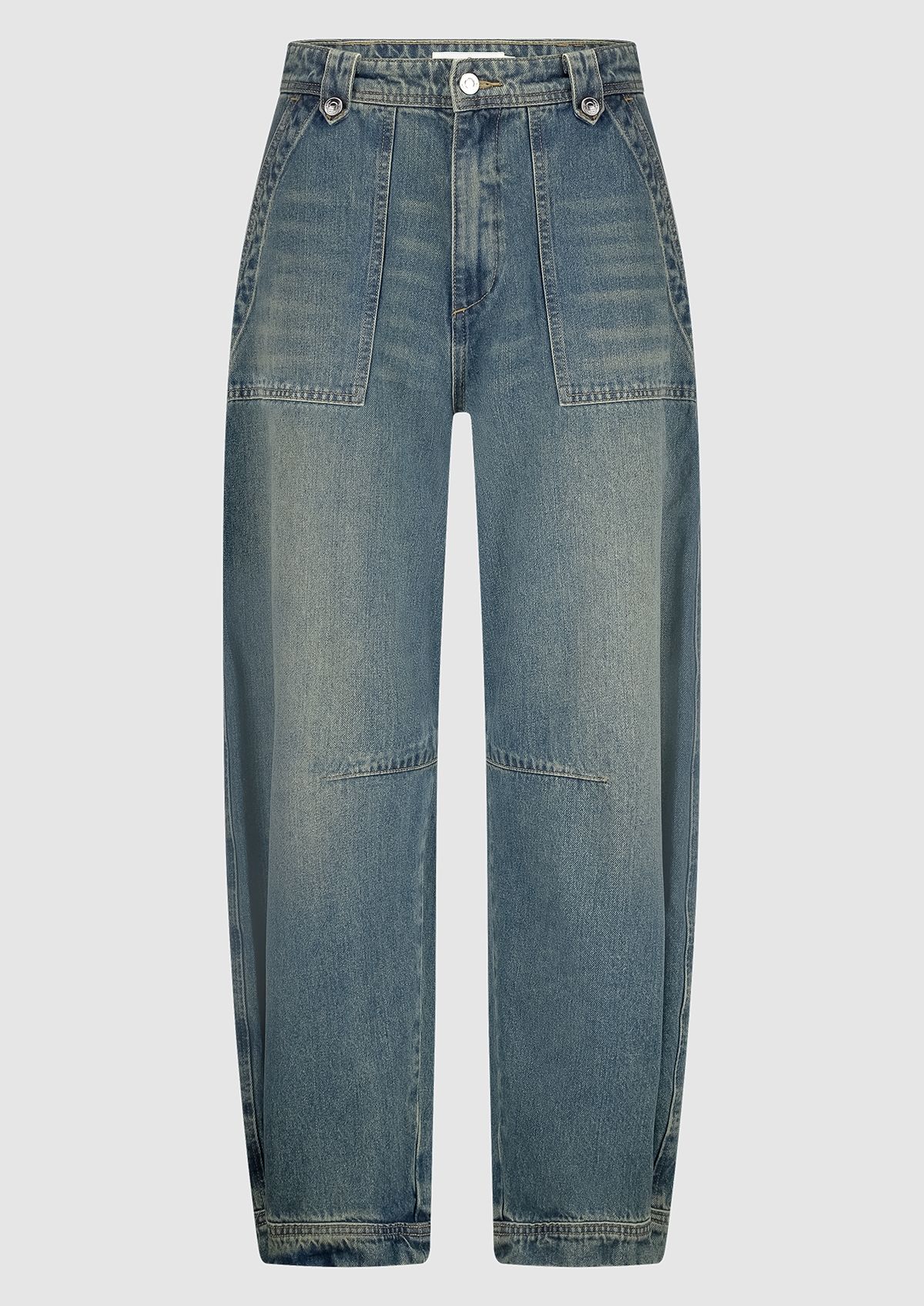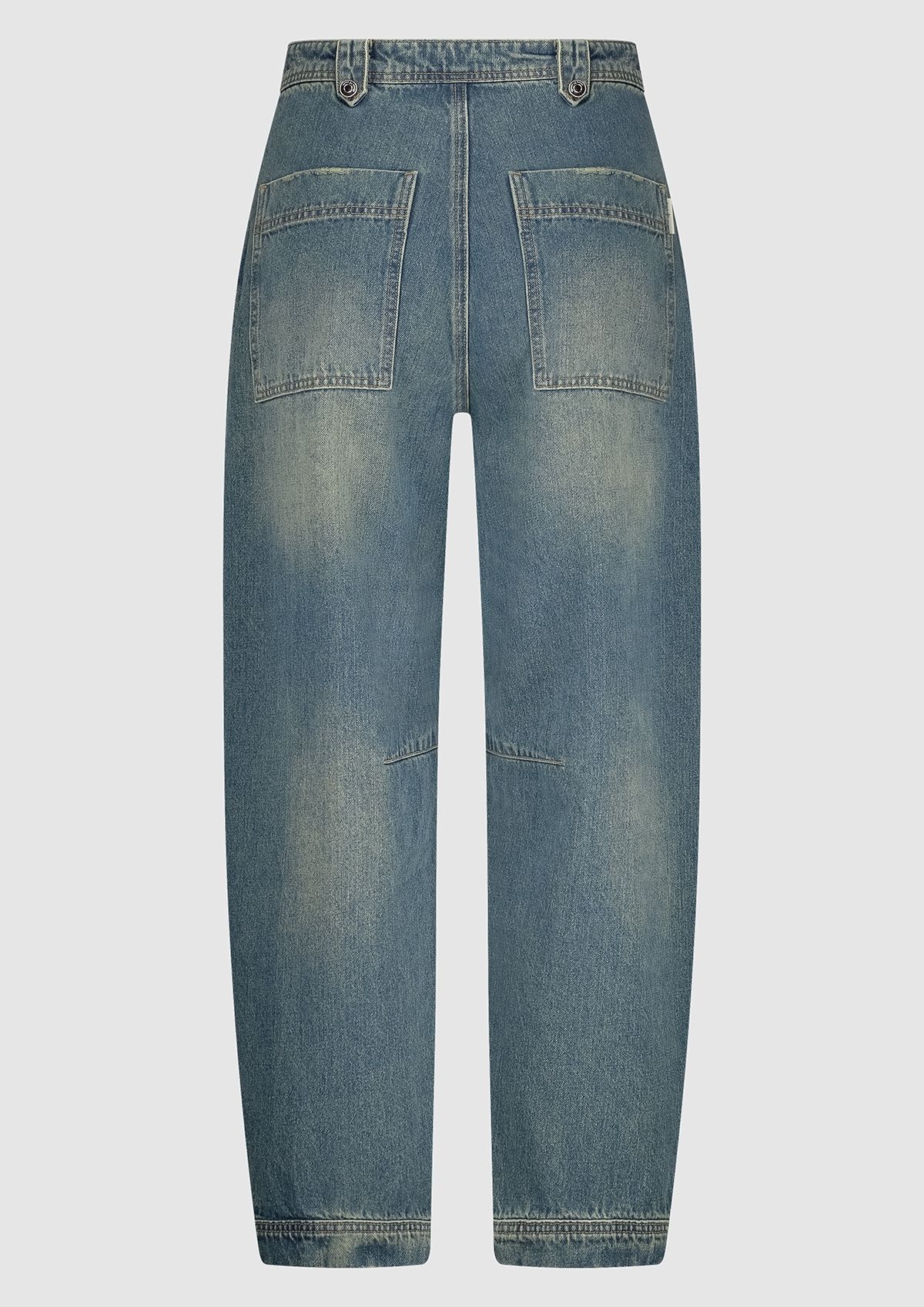 De loren is onze high waist barrel jeans voor meisjes, dit model valt wijd op de benen en loopt aan de onderkant taps toe. Deze jeans is uitgevoerd in een vintage blauwe wassing met opvallend contrast en gemaakt van stretch denim.