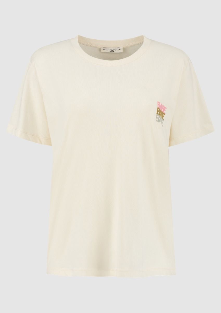 Zacht katoenen t-shirt in gebroken wit met een artwork print. De Suri tee heeft een regular fit met een ronde hals.