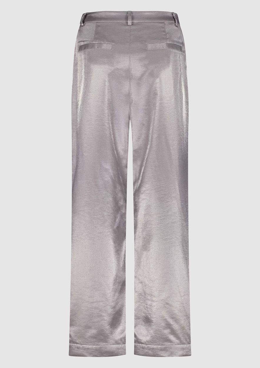 Wijdvallende dames pantalon met aan de buitenkant een satin look & feel. De Kiki pants is uitgevoerd in het zilver en voorzien van steekzakken en een front seam. In meerdere tinten verkrijgbaar.
