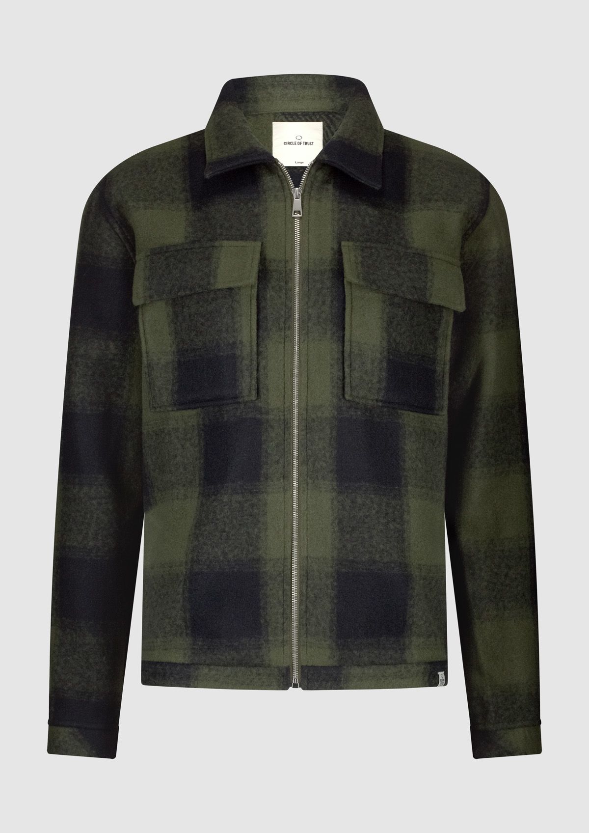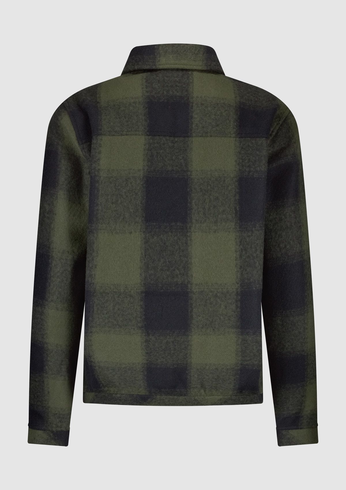 Winters herenvest met een groen-zwart ruitpatroon. Het Zane overshirt heeft een regular fit met een ritssluiting en klepzakken op de borst.